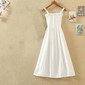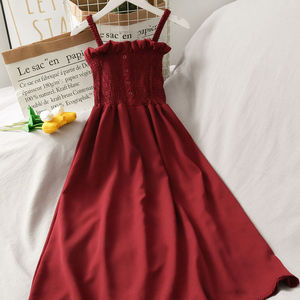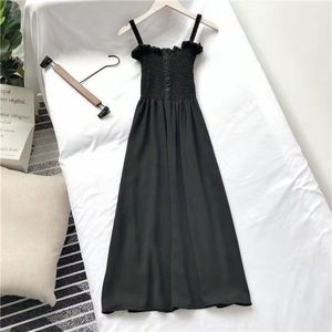 复古领字一抹胸吊带裙初恋温柔裙中长款连衣裙女褶皱边裙子夏跨境