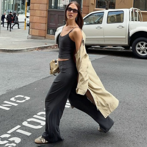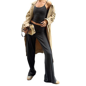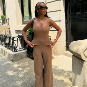 Q25ST286 欧美跨境秋季女装亚马逊新款纯色U领背心直筒长裤套装女