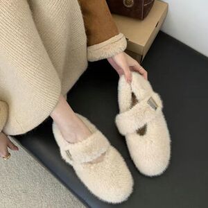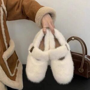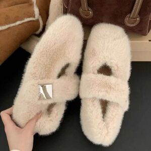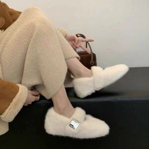 秋冬新款气质毛毛鞋女增高外穿新款仙女鞋一脚蹬豆豆鞋冬加绒棉鞋