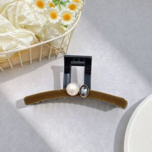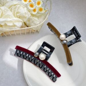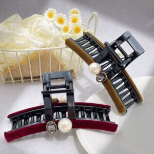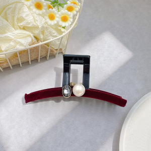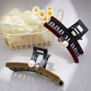 韩版植绒珍珠抓夹秋冬镶钻鲨鱼夹多发量大号后脑勺盘发夹头饰发饰