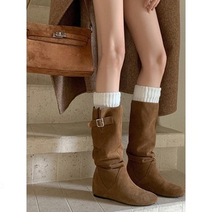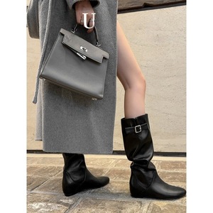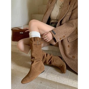 复古西部牛仔靴女秋冬新款内增高高筒靴百搭时尚显瘦瘦腿靴