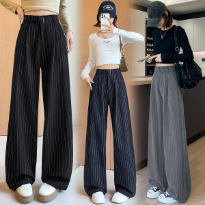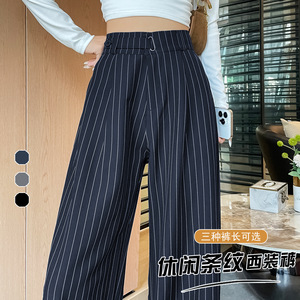 条纹西装裤女2025秋季窄版小个子高级感宽松垂坠感高腰拖地阔腿裤