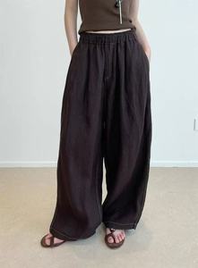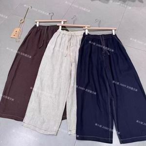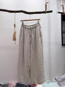 2025秋季新款韩版宽松显瘦时尚汉麻明线松紧腰直筒裤百搭休闲裤女