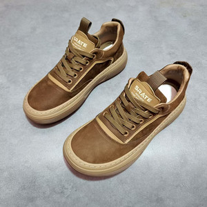 2025秋季男鞋真皮复古潮流厚底板鞋时尚休闲皮鞋懒人歪头鞋男