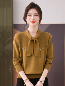 秋季上衣女新款2025新品女士羊毛衫简约百搭设计感女士打底羊毛衫