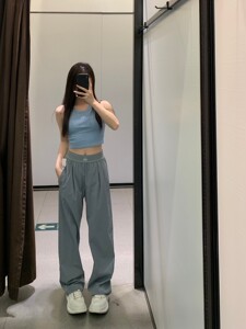 原标Alo高腰梭织瑜伽长裤女士宽松垂感休闲裤外穿显瘦运动阔腿裤