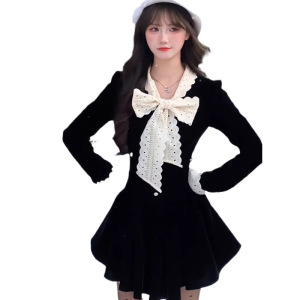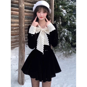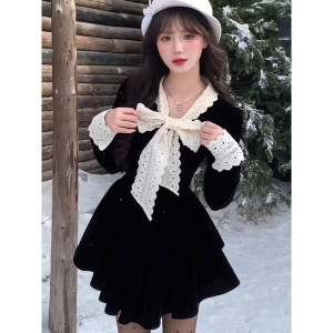 秋冬新款 miu系富家千金黑色连衣裙女风穿搭收腰公主裙