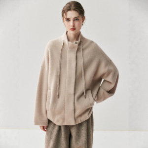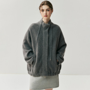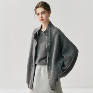 2025秋冬新855克空气层山羊绒外套女加厚拉链女宽松保暖针织开衫