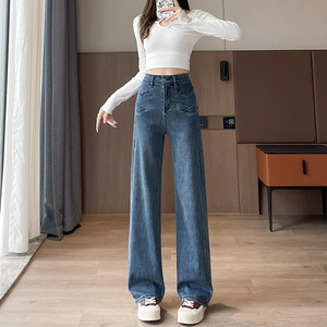 复古牛仔裤女春秋季2025新款高腰显瘦宽松百搭直筒垂感九分阔腿裤