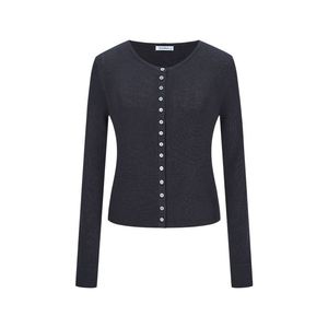韩系简约单排扣长袖针织开衫女2025早秋新款修身显瘦薄款外搭上衣