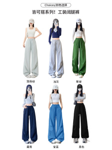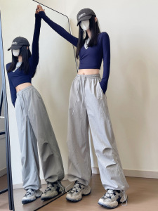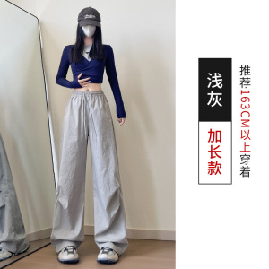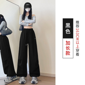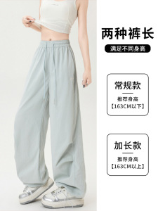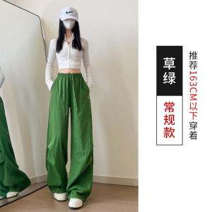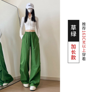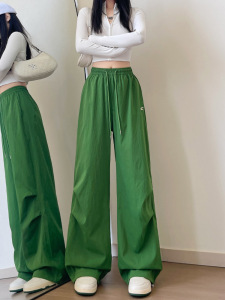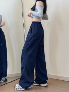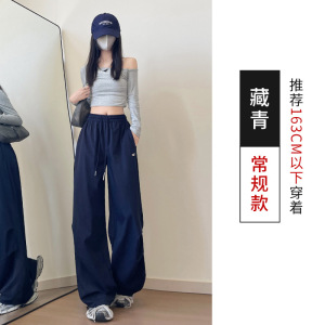 美式速干刺绣工装运动裤女春秋新款宽松高腰显瘦垂感休闲阔腿长裤