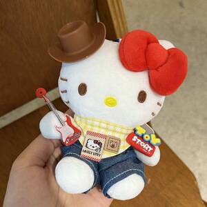 新款正版HelloKitty毛绒钥匙扣牛仔裤连衣裙捧吉他装饰包包挂件
