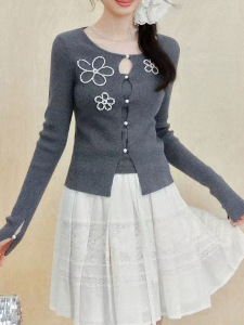 欧阳喜《珍妮丝花园》法式气质圆领长袖上衣秋季百搭显瘦毛针织衫
