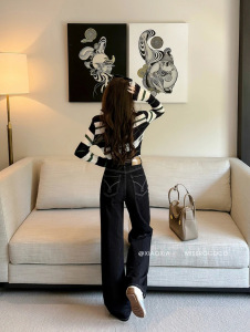 DUOXINIU/多喜牛/DaLin早秋上新窄版阔腿裤女高腰牛仔裤垂坠显高
