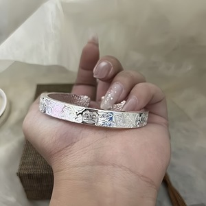 2025新款三面锤纹吉言银手镯白铜镀银男女实心开口手镯