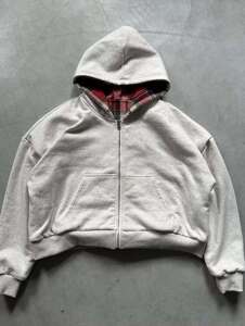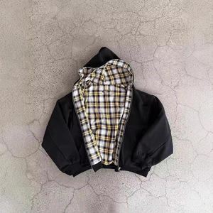 格子拉链开衫连帽衫y2k新款秋冬双面穿街头个性男女同款卫衣批发