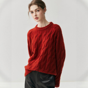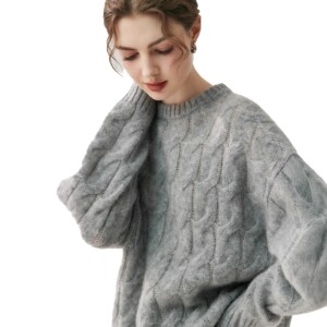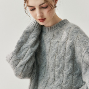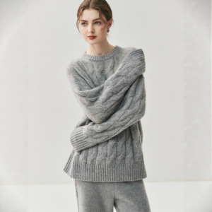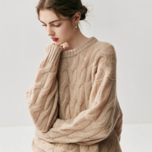 2025秋冬新款麻花宽松显瘦真丝羊绒衫女慵懒风针织大毛衣圆领加厚