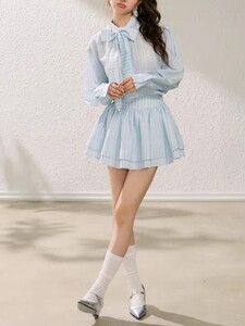 法式镂空花朵飘带领衬衫女外套显瘦蛋糕裙半裙套装