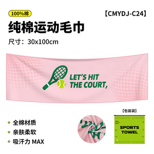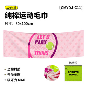【网球运动毛巾】亚马逊新款全棉a类纯棉毛巾100棉数码印花运动巾