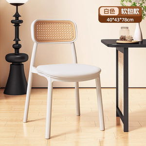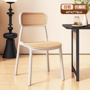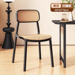 塑料藤编椅子中古风餐椅靠背椅透气藤椅家用小户型餐桌椅民宿凳子