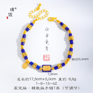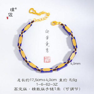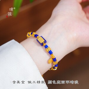 璞佐金店同款沙金天然青金石五条经文上上签手链新中式百搭手串女
