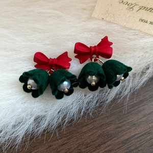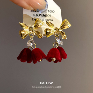 银针蝴蝶结花苞耳钉2025秋冬圣诞节甜美ins耳环轻奢高级感耳饰女