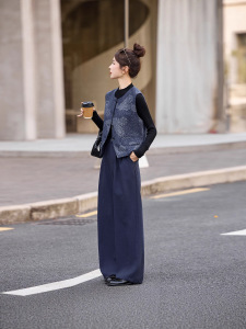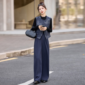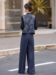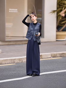 复古腰果印花马甲套装女2025新季新款轻熟风时尚显瘦阔腿裤三件套