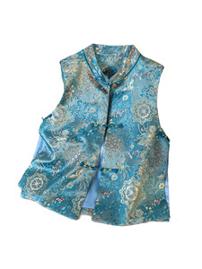实拍新中式马甲背心女秋季时尚洋气复古百搭织锦盘扣马夹上衣女