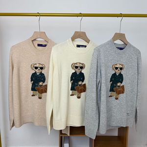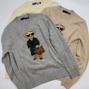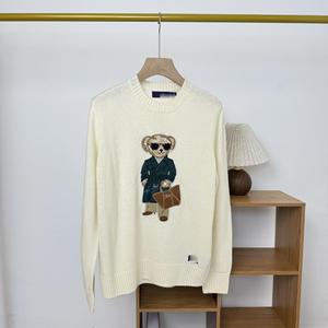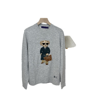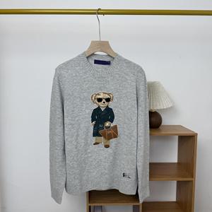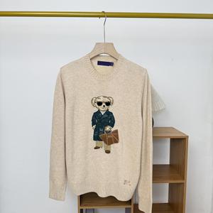 RL/高品质25年秋冬贴片小熊羊毛重工刺绣卡通圆领毛衣针织女