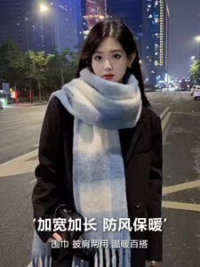 新款马海毛围巾女秋冬季韩系高级感百搭美拉德仿羊绒保暖跨境批发