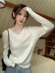 新款假两件内搭打底毛衣外穿女大码胖mm显瘦小香风针织衫杏色上衣
