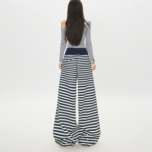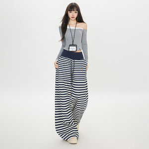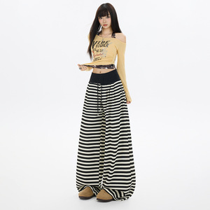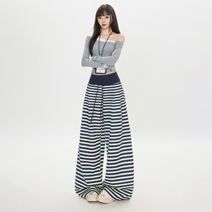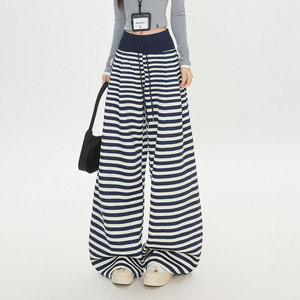 2025新款秋冬条纹宽松舒适长裤美式蓝白抽绳有弹力休闲裤设计感