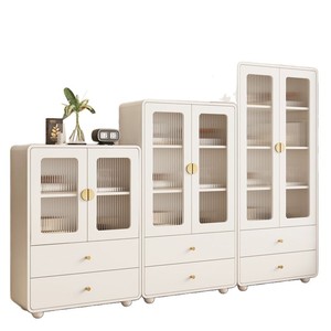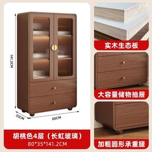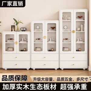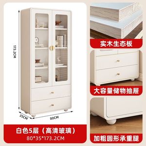 家用玻璃门落地防尘实木书柜一体靠墙客厅展示储物柜组合收纳书架