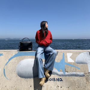 YKK秋季新款女装直筒牛仔裤女2025年修身显瘦高腰宽松窄款阔腿裤