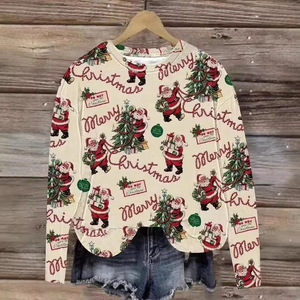 新款跨境跨境大码圣诞主题圆领卫衣圣诞3D数码印花欧美