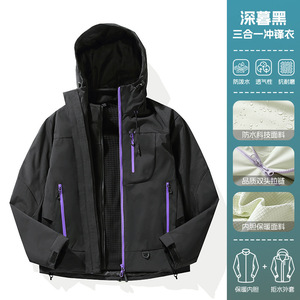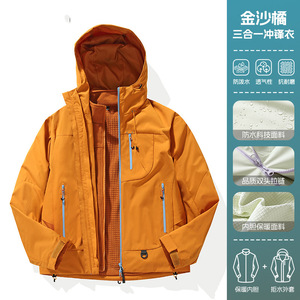 大牌冲锋衣女2025新款春秋户外三合一小个子防风防水登山服外套男