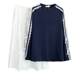 200斤胖妹妹大码秋季减龄花边长袖上衣半身裙两件套洋气套装8198