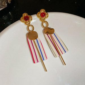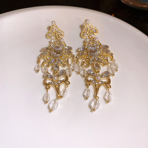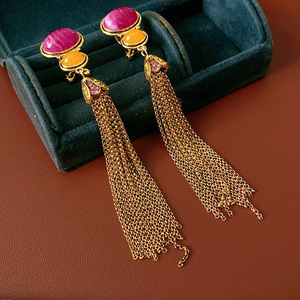中古vintage复古花朵耳环轻奢高级感流苏耳钉设计感百搭耳饰批发