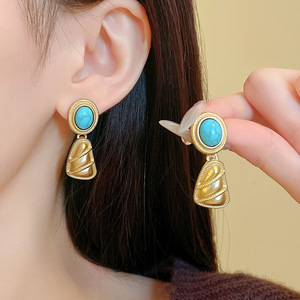 银针中古.滴油耳环