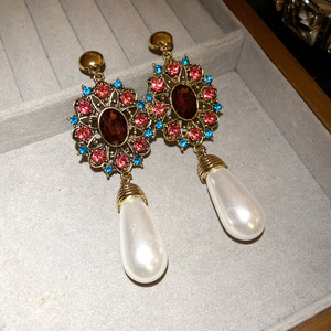 镶钻中古钻珍珠花朵耳夹