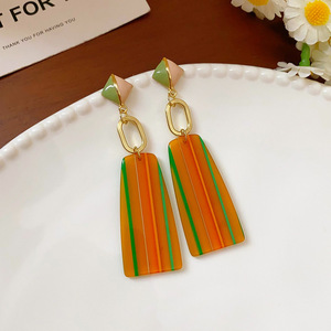 银针树脂几何椭圆耳环