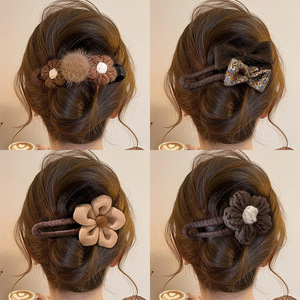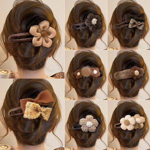 可爱毛绒花朵鸭嘴夹秋冬显发量发夹女韩系百搭发卡秋冬后脑勺头饰