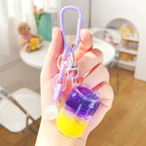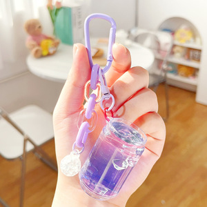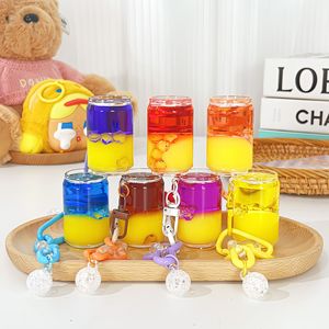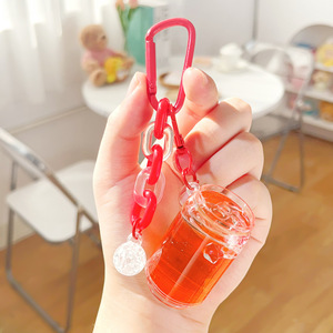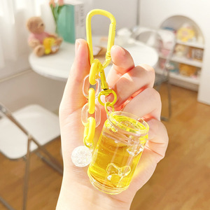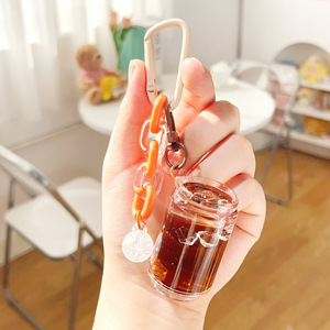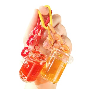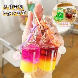 亚克力易拉罐钥匙扣钥匙圈饮料瓶挂件奶茶液体入油瓶包挂饰小礼品