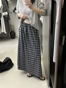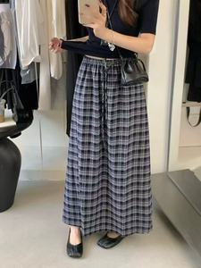 【复古格纹半身裙】2025秋新款韩版高腰抽绳设计百搭显瘦休闲长裙