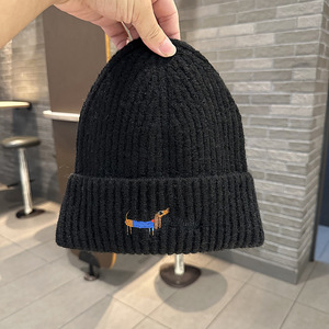 韩版帽子女冬天加厚保暖针织帽可爱腊肠小狗包头帽护耳保暖毛线帽