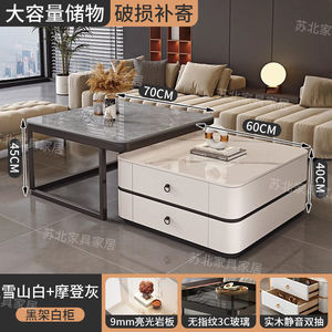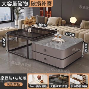 新款意式岩板家用小户型茶几轻奢现代简约客厅网红方形组合简约