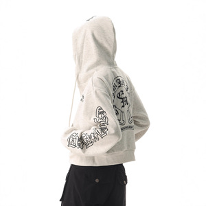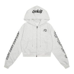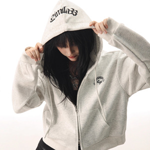美式小众字母印花袖边立领连帽卫衣女宽松百搭辣妹开衫嘻哈上衣潮