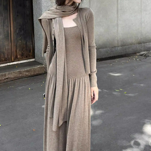 ZHOYUE ▏请冷风法式雕塑美学 针织开衫背心裙围巾三件套女装秋季