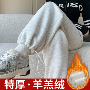 灰色羊羔绒运动裤女秋冬高腰垂感加绒阔腿裤休闲卫裤保暖加厚棉裤