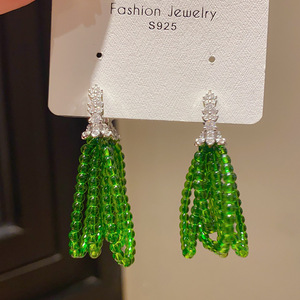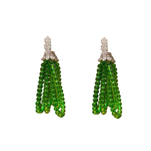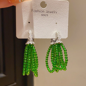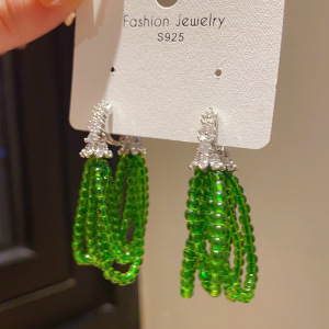 轻奢锆石多层米珠串珠花朵流苏耳扣森系小清新气质小众高级感耳环